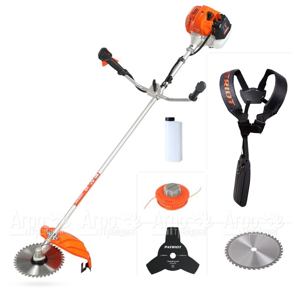 На фотографии Бензокоса (бензиновый триммер) Patriot PT 555 + диск, катушка с леской:
