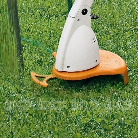 В электрокосе (электрическом триммере) Stihl FSE 52 предусмотрено специальное приспособление предназначенное для разгрузки кабеля от натяжения, которое не дает случайно отсоединиться вилке при подтягивании кабеля. Наличие распорки не позволяет повреждать растения, поверхность стволов деревьев и побеги кустов, т.к. леска не выходит за пределы регулируемого колеса. Инструмент удобен для кошения травы в стесненных частыми посадками местах.